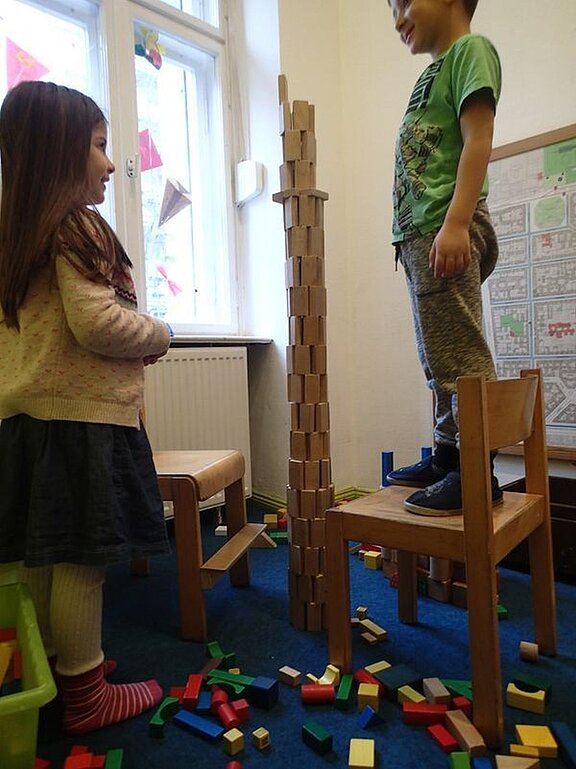 Kommt mit ich zeig sie euch, hier können wir konstruieren, bauen und spielen: Legos, Duplos, Eisenbahnschienen, Autos, Holzbausteine soviel du willst oder doch lieber Puppentheater? Schau gleich geht der Vorhang auf… machst du mit?