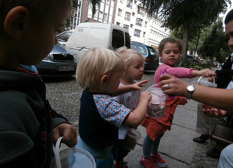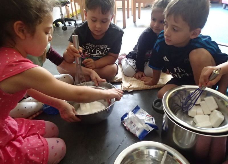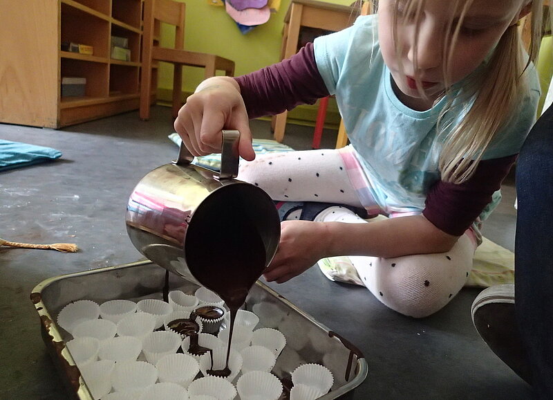 Ein paar Kinder bleiben auch in der Kita und machen selber Schokolade!