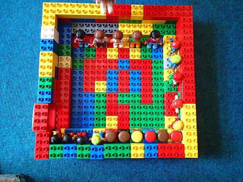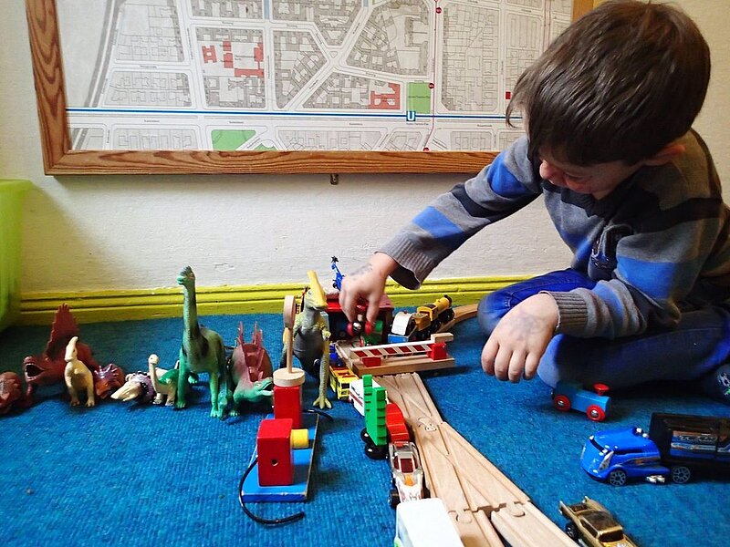 Kommt mit ich zeig sie euch, hier können wir konstruieren, bauen und spielen: Legos, Duplos, Eisenbahnschienen, Autos, Holzbausteine soviel du willst oder doch lieber Puppentheater? Schau gleich geht der Vorhang auf… machst du mit?